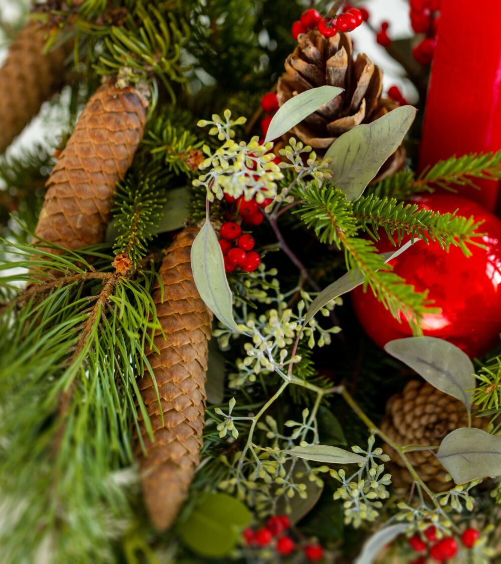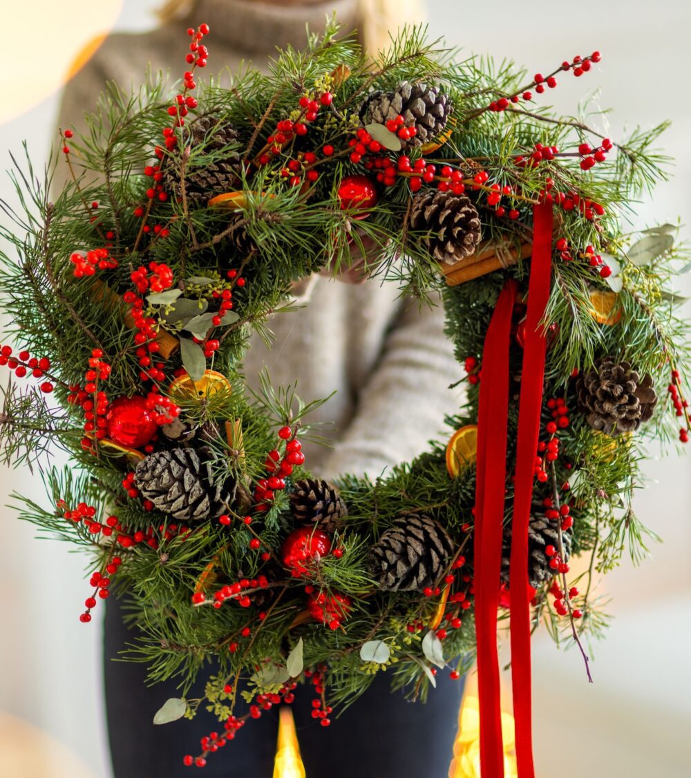 Uwaga: Każdy wianek jest wykonywany ręcznie, dlatego może się delikatnie różnić od tego na zdjęciu. Jeśli masz konkretne preferencje, np. w zakresie koloru wstążek, prosimy o informację w komentarzu przy składaniu zamówienia. Nasi floryści z przyjemnością dostosują kompozycję do Twoich potrzeb.